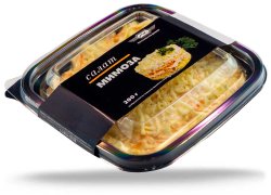 блинчики (вода, мука пшеничная в/с, меланж, масло подсолнечное рафинированное дезодорированное, сыворотка сухая, сахар, молоко пастеризованное нормализованное, соль), ветчина из свинины, сыр «Голландский» с м.д.ж. в сухом вещ-ве 45%.